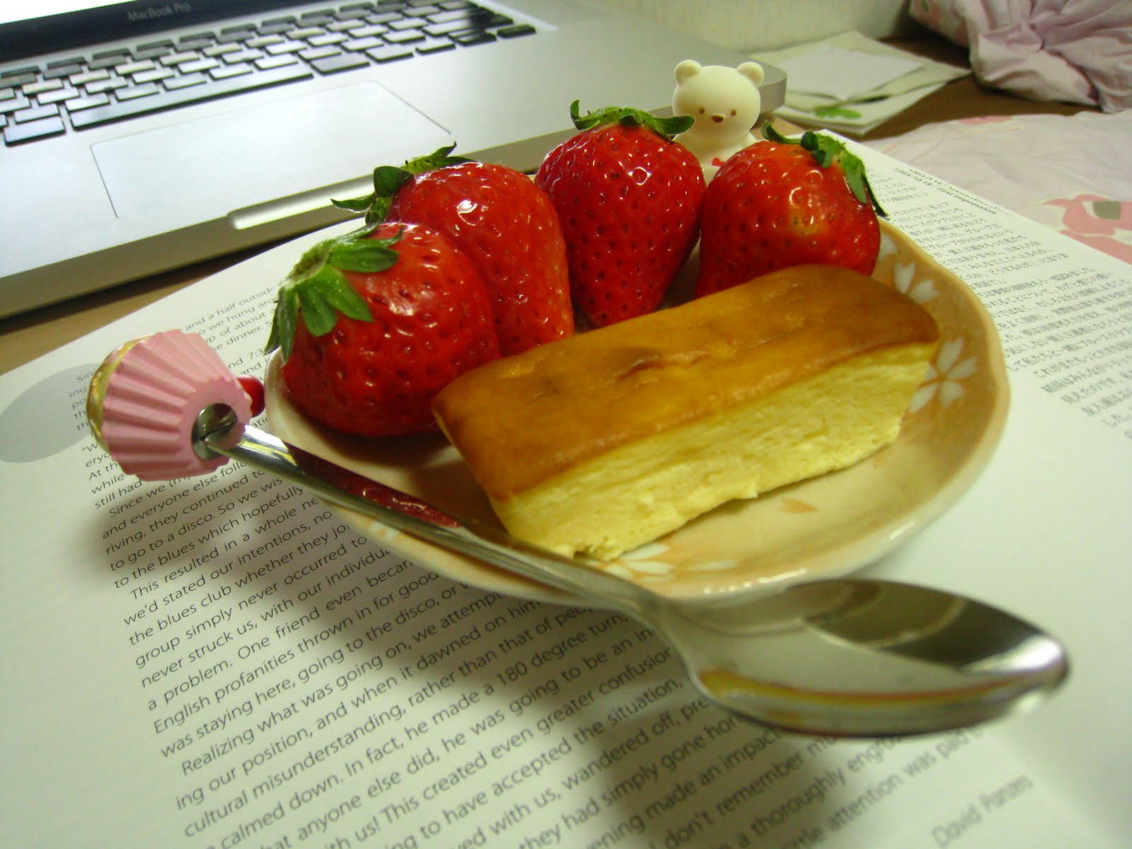 Today, Rabu-Beah-san decided to hide amongst fresh strawberries. The fragrance from these local strawberries (or are they? that's all I could gather from the packaging...) is powerful and delicious! They went very well with that creamy spongecake. Rabu-Beah-san loves plump strawberries, but he still loves YOU more, though!